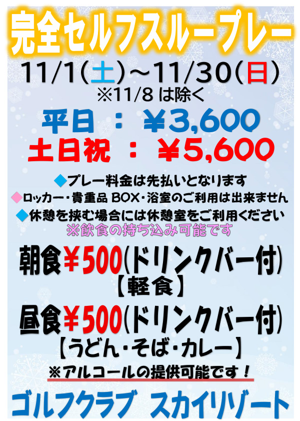 ☆11月完全セルフスループレーのお知らせ☆ -2025.10.20- |